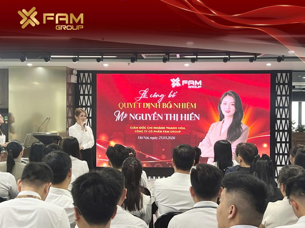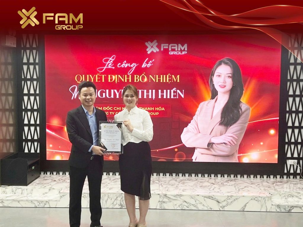 Với mục tiêu phát triển quy mô FAM GROUP lớn mạnh, ngày 23/03/2026 tại trụ sở chính, Công ty Cổ phần FAM Group đã tổ chức Lễ công bố quyết định bổ nhiệm bà Nguyễn Thị Hiền giữ chức Giám đốc Chi nhánh Thanh Hóa.