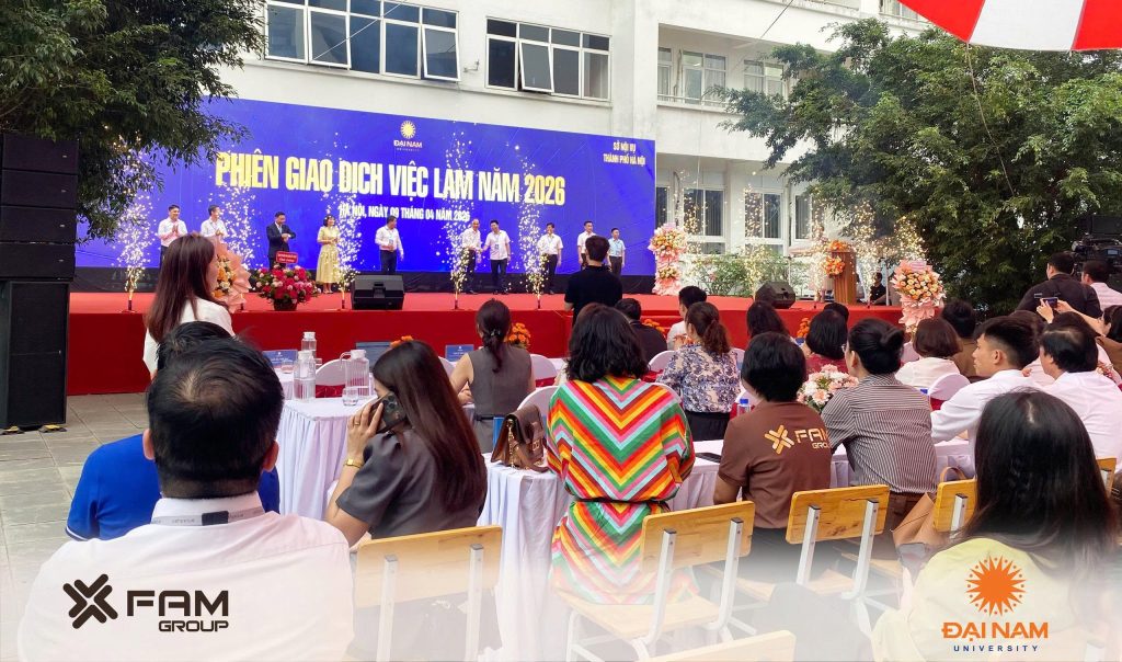 Sáng 09/04/2026, chương trình “Phiên giao dịch việc làm năm 2026 – DNU Job Fair 2026” do Trường Đại học Đại Nam (DNU) tổ chức đã thu hút hàng nghìn sinh viên tham gia. Chương trình có sự tham gia đồng hành của Công ty Cổ phần FAM GROUP.