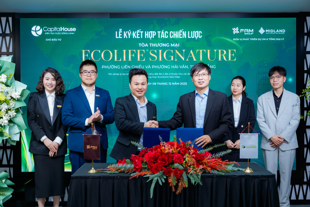 Ngày 09/12/2025, Tiếp nối sự kiện lễ ký kết “Hợp Tác Chiến Lược Toàn Diện” FAM GROUP và CAPITAL HOUSE tiếp tục tiến hành ký kết “Hợp tác phát triển và Tổng Đại lý phân phối” dự án Ecolife Signature Đà Nẵng. Đây là dấu mốc quan trọng đầu tiên trong hành trình đồng hành phát triển chiến lược toàn diện giữa 2 bên đã được thỏa thuận hợp tác.