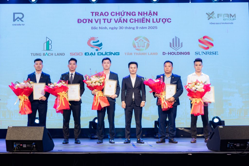 Đại diện Tổng đại lý FAM GROUP trao chứng nhận cho các đơn vị tư vấn chiến lược cho dự án